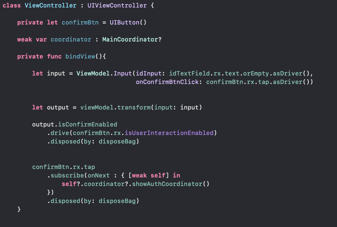하지만 제 생각에는 이렇게 할경우 ViewController에서 MainCoordinator의 모든 것에 start(), navigationController, childCoordinator등등 접근할 수 있는 권한이 생겨서 좋지 않는 방법이라고 생각합니다.