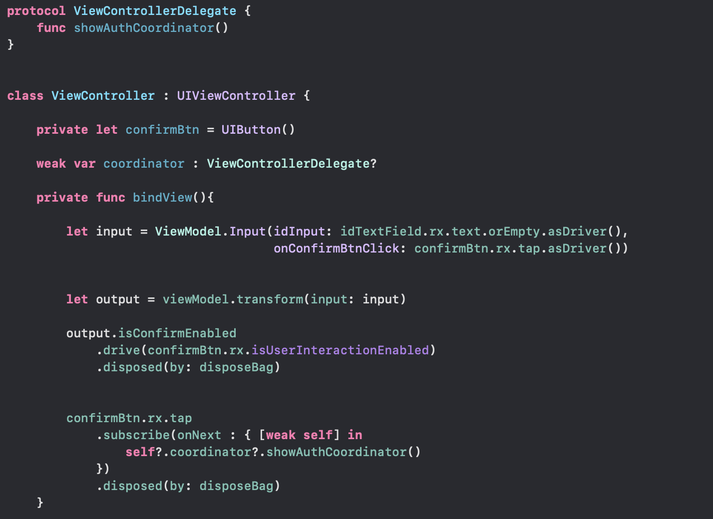 따라서 위의 방식처럼 View가 Coordinator의 protocol을 주입다는 대신에