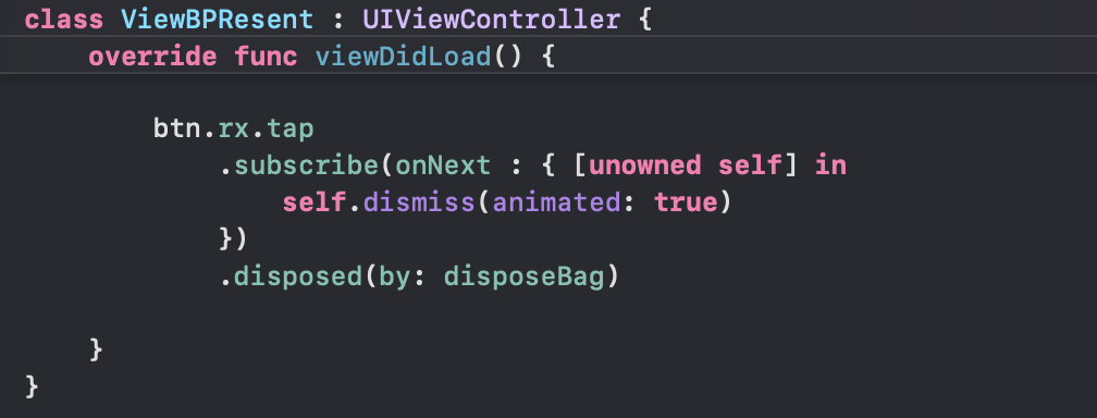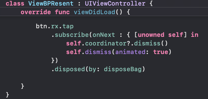 딱봐도 dismissed가 사라진 ViewController라는 것을 직감적으로 알 수 있습니다.