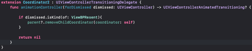 이때 위와 같이 하면 바로 coordinator가 없어지며 순서가 뒤죽박죽 되겠죠. 따라서 pop되는 ViewController가 Coordinator의 rootViewController인지 확인을 할 수 있어여 합니다.