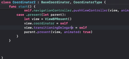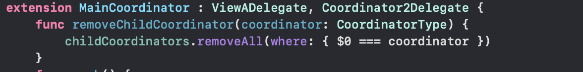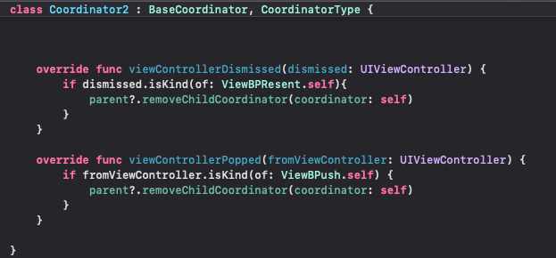 제가 "간단"하다고 말한 이유는 지금 하나의 Coordinator에서 여러개가 presenter되거나 여러개가 push되는 경우가 없기 때문이죠