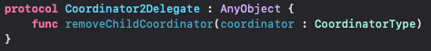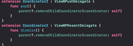 따라서 Coordinator2에서 parent.removeChildCoordinator(coordinator : self)이런식으로 함수를 호출해주게 되면
