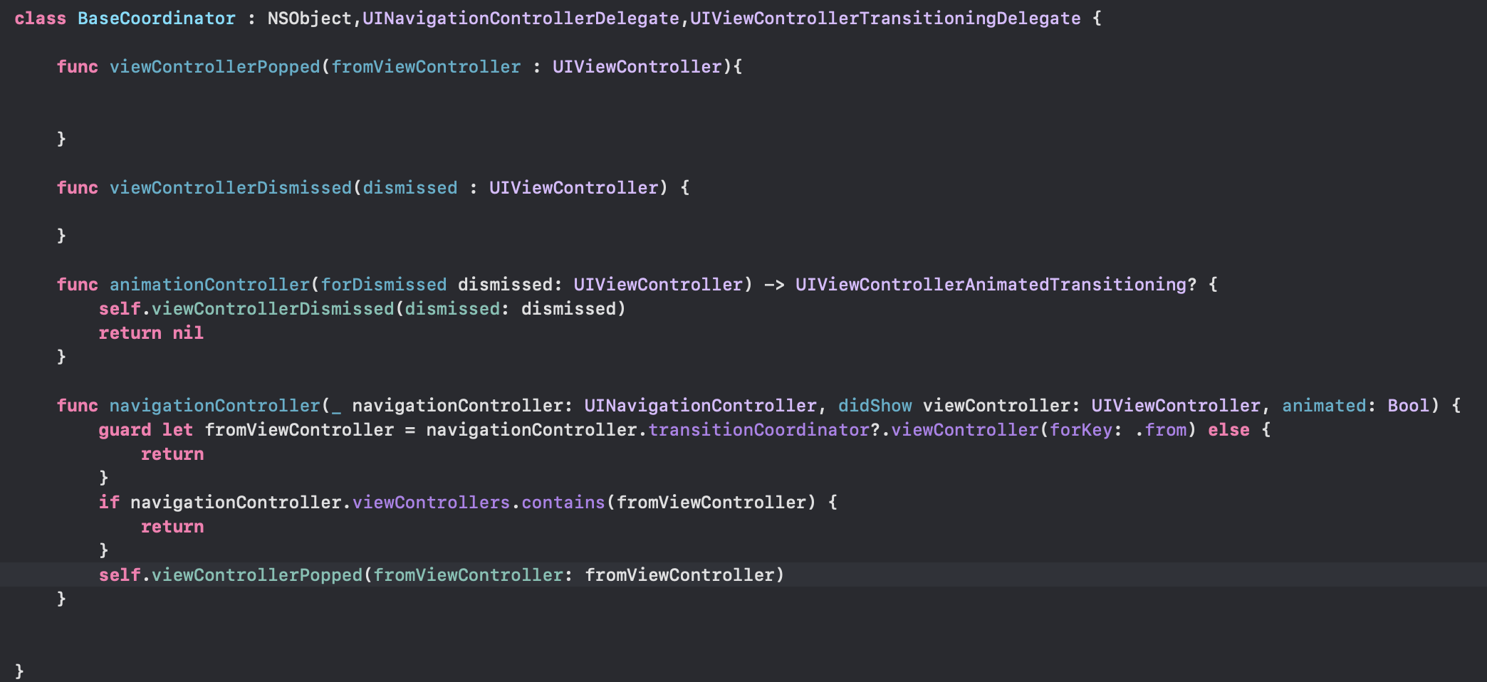 따라서 그냥 BaseCoordinator에 채택을 시켜줌으로써 코딩을 조금이나마 줄일 수 있습니다.