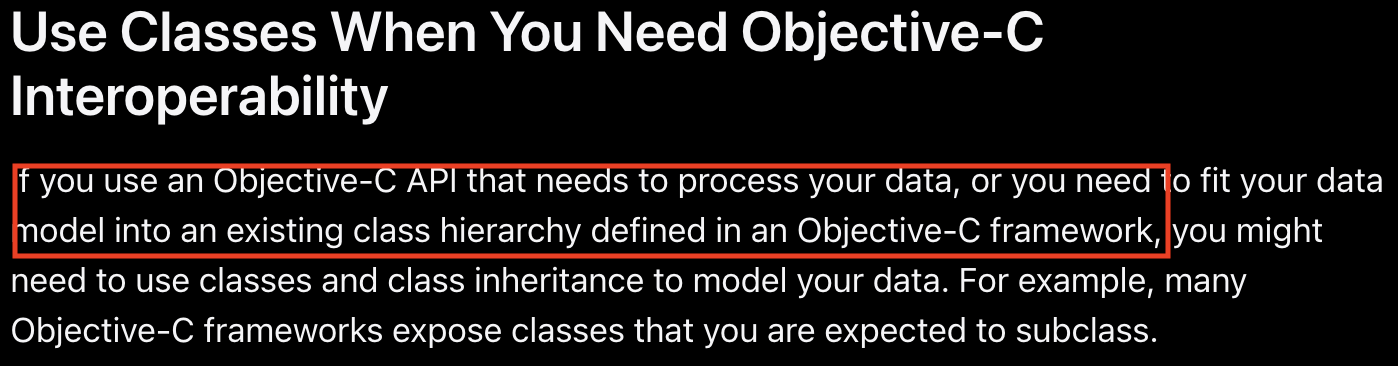 옵젝C와 상호작용을 하기 위해선 왜 Class여만 할까요? 이유는 다음과 같습니다.