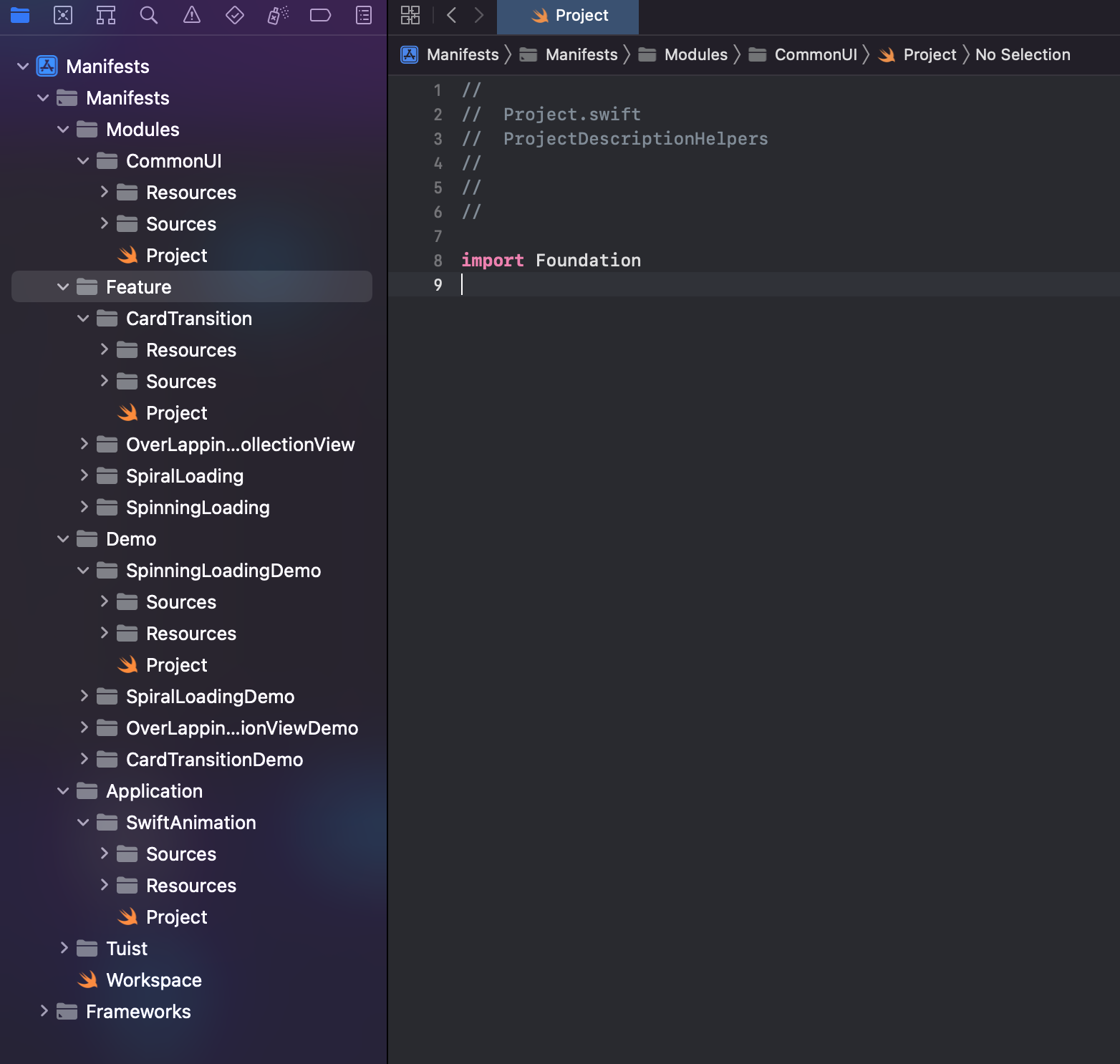 이제 Application/SwiftAnimation/Project.swift 하나 남았다.
