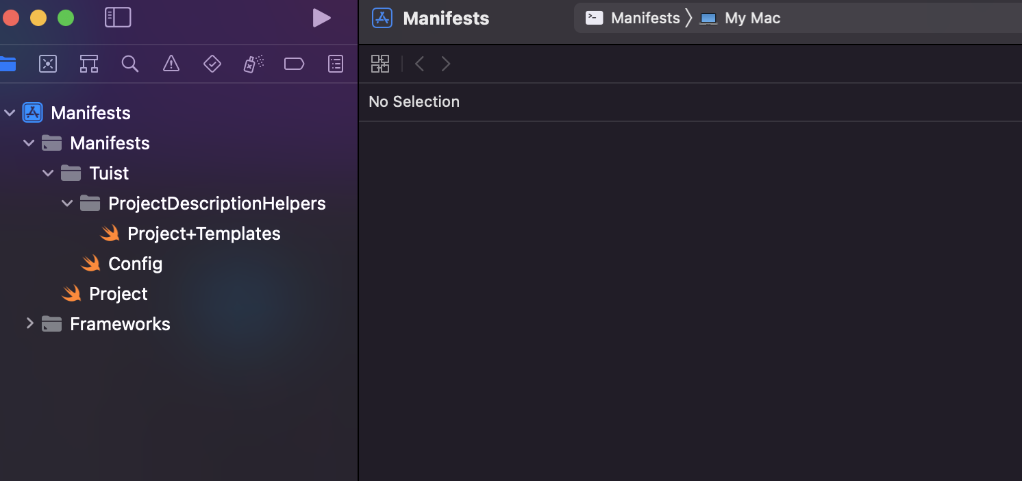 이는 아직 휘하에 파일들이 없기 때문이다. 이부분이 Tuist를 사용하면서 불편한 점 중 하나 인것 같다.