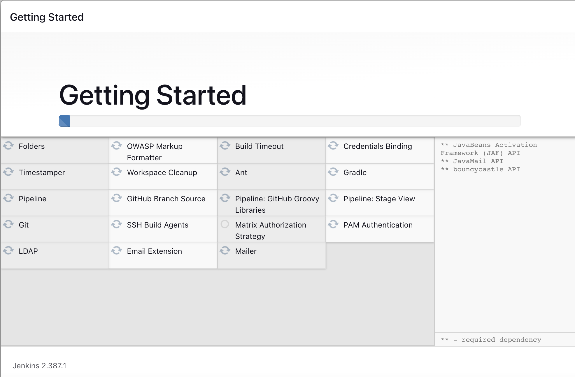 여기서는 JENKINS에서 어떤 플러그인을 쓸건지 설정하는 화면이 나옵니다.