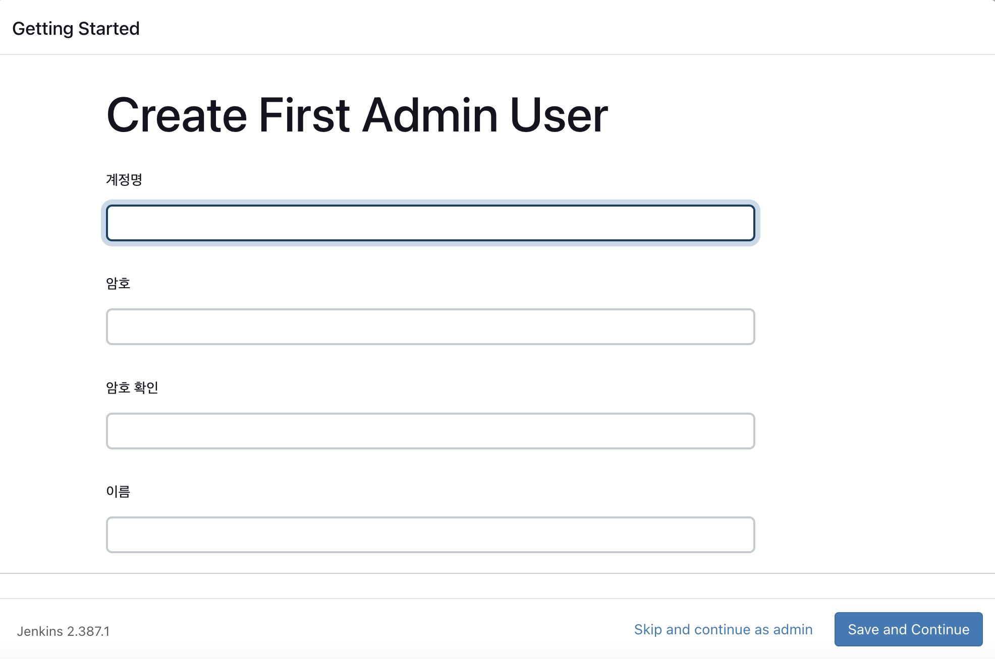 플러그인 설치가 완료 되면 이제야 다음과 같은 유저 설정 화면이 나옵니다.