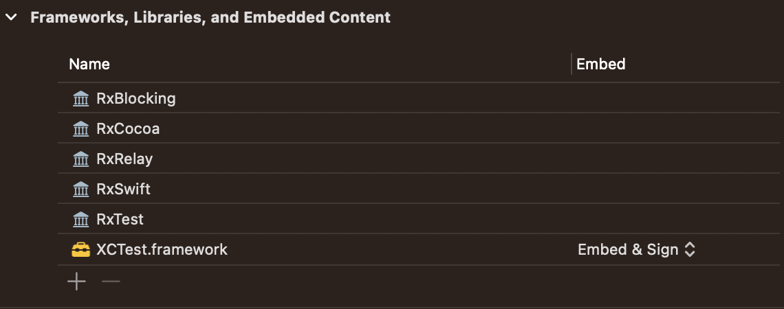 보시는 바와 같이 Rx에 관한거 전부 있는데 XCtest의 프레임 워크만 없네요. 왜지? 분명히 추가했는데...