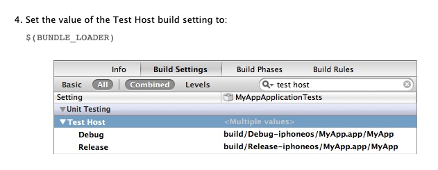 이 경우는 TestTarget buildSetting -> TestHost를 보시면 다음과 같이 되어 있습니다.